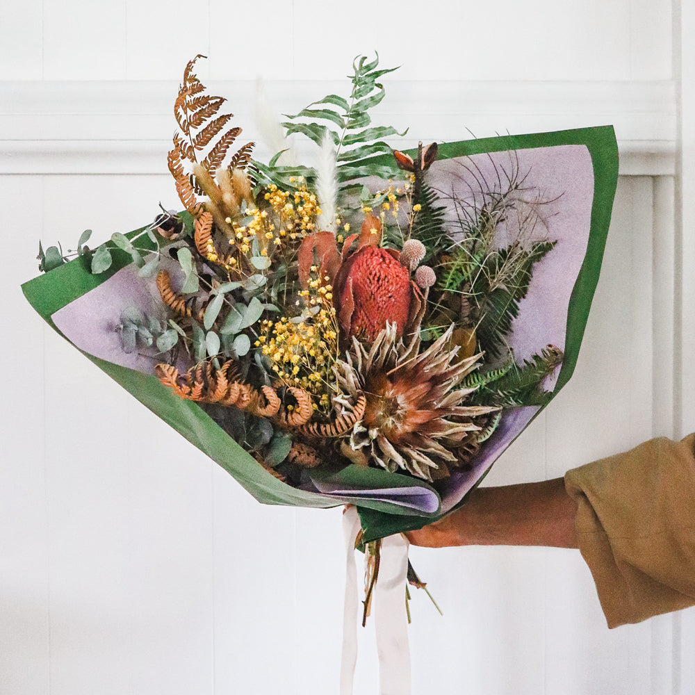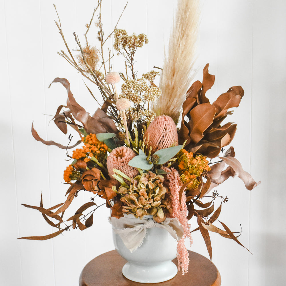 Our dried flower bouquets will keep on looking beautiful forever. A selection of natural earthy colours and interesting textures. These bouquets are such a special gift. Available in a stylish ceramic pot or as a handtied bouquet.